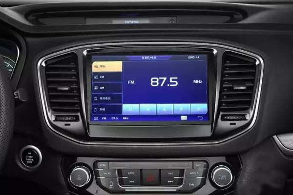 儀表盤采用雙圓設計,轉速表和車速表使用液晶顯示,字體也是吉利家族式字體,行車電腦可顯示胎壓、油耗等信息。中控屏采用高清9寸觸摸液晶大屏,分辨率達到1024*600,支持1080P的高清視頻,觸控式電容按鍵響應時間為25毫秒。除導航外,還有藍牙電話等功能,還可將手機屏幕映射到中控屏上。