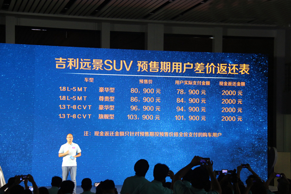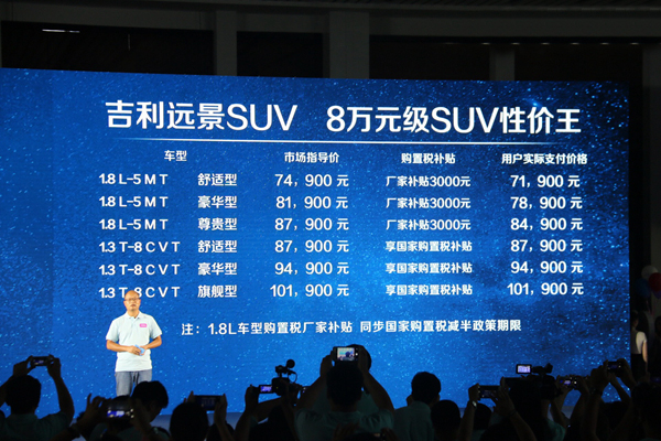 | 吉利遠(yuǎn)景SUV 官方指導(dǎo)售價(jià) | |||