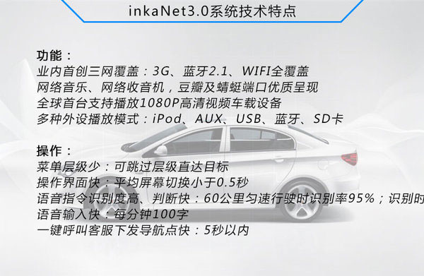 在今年5月上市的全新榮威550車(chē)型上,搭載了inkaNet 3.0系統(tǒng),其全面整合倒車(chē)影像、觸摸屏、藍(lán)牙、導(dǎo)航、3G上網(wǎng)等功能。而inkaNet系統(tǒng)作為上汽集團(tuán)智能網(wǎng)絡(luò)行車(chē)系統(tǒng)的代表,自推出以來(lái),不斷進(jìn)行著升級(jí)和優(yōu)化。相比上一代inkaNet2.0系統(tǒng),最新版本的inkaNet3.0系統(tǒng)并沒(méi)有增加更多的功能,而是在操作、安全和智能導(dǎo)航在方面進(jìn)行了巨大的升級(jí),大幅提升了用戶(hù)使用操作的體驗(yàn)。