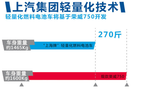 在車(chē)型增加的基礎(chǔ)上,上汽集團(tuán)也將在現(xiàn)有車(chē)型的基礎(chǔ)上,進(jìn)行二次研發(fā)。據(jù)了解,上汽集團(tuán)將要推出的“上海牌”輕量化燃料電池車(chē)(基于750進(jìn)行開(kāi)發(fā)),其將應(yīng)用輕質(zhì)材料,36種輕量化零部件集成應(yīng)用使整車(chē)較原先減重133.6Kg,在車(chē)身重量減輕后,車(chē)輛將可以有效增加車(chē)輛行駛里程。