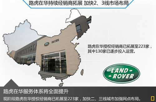 旗下車型不斷豐富的同時,路虎在華的經銷商網絡也在不斷拓展。路虎中國高層表示:“現階段路虎在華授權經銷商已拓展至223家,其中130家已逐步投入運營,后續93家也將陸續開展工作,二、三線城市將加強網點布局。”此外,路虎還將建立更多零部件分銷中心及培訓中心,整體的服務體系將實現全面提升。