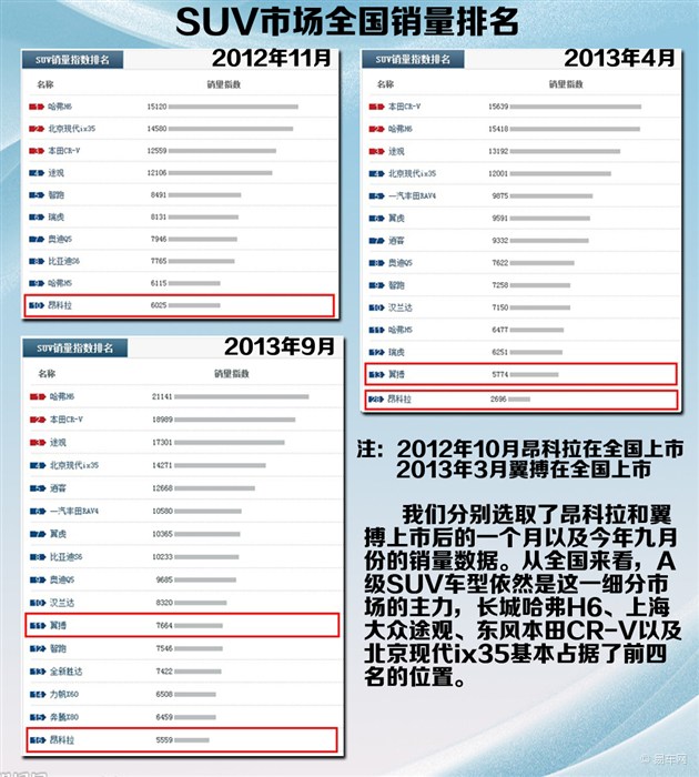 雖然A0級SUV增速表現搶眼,但從全國范圍來看,A級SUV依然是這一細分市場的主力軍。H6、途觀、CR-V和ix35更是長期占據前四名的位置。可見,大部分人還是更傾向于接受15至30萬元的SUV車型,這些車型所具有的良好通過性及不錯的空間表現都是SUV熱銷的重要因素。