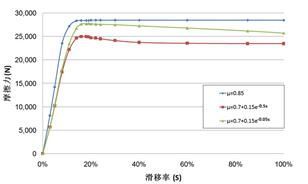 圖5 三種摩擦模型在不同滑移率下制動(dòng)力變化,