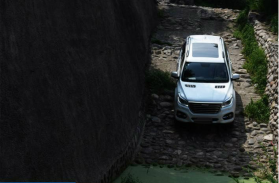 行進在坑洼路面時,較小的顛簸會被H9舒適的懸架過濾掉。而起伏明顯的炮彈坑路面,懸掛也不會有多余的彈跳,表現很不錯。