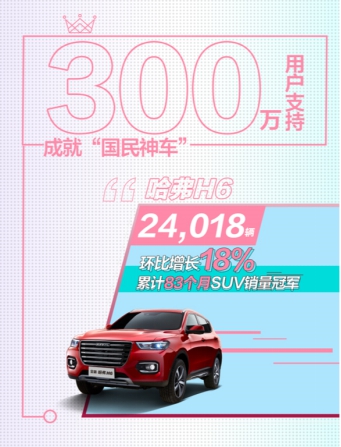 在聚焦戰略的指引之下,哈弗SUV創下了十年十冠的品牌神話。同時,短短8年時間全球銷量突破300萬大關,累計83個月登頂SUV榜首之位,月銷量超過8萬輛,每33秒銷售一臺新車的巔峰戰績等,無不彰顯著全民神車哈弗H6的榮耀傳奇。這意味著中國汽車已快速崛起,打破了過往合資及進口品牌的壟斷地位。