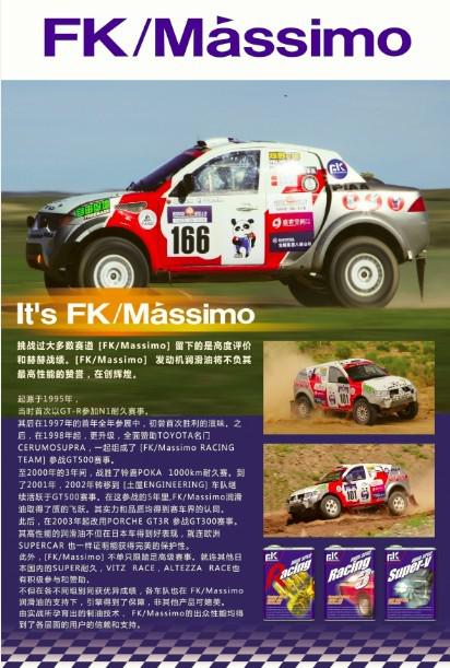FK/Massimo源于1949年,由日本富士興產(chǎn)株式會社獨(dú)立生產(chǎn),富士興公司隸屬于日本最大的石油集團(tuán)-新日本石油集團(tuán), FK/Massimo品牌正是在新日本石油集團(tuán)的卓越制油技術(shù)和嚴(yán)格品質(zhì)管理下誕生的高品質(zhì)機(jī)油。挑戰(zhàn)過大多數(shù)賽道,留下的是高度評價(jià)和赫赫戰(zhàn)績,由多年的實(shí)戰(zhàn)所孕育出的制油技術(shù),FK/Massimo的出眾性能得到了多國用戶的信賴和支持,現(xiàn)在無論是高性能車還是普通的街道用車都能找到適合的FK/Massimo機(jī)油。100%日本原裝進(jìn)口,由日本富士興產(chǎn)公司獨(dú)立生產(chǎn)的,沒有經(jīng)過任何異地分裝或者加工環(huán)節(jié),質(zhì)量得到保證,是富士興產(chǎn)極具自信的發(fā)動機(jī)潤滑油。